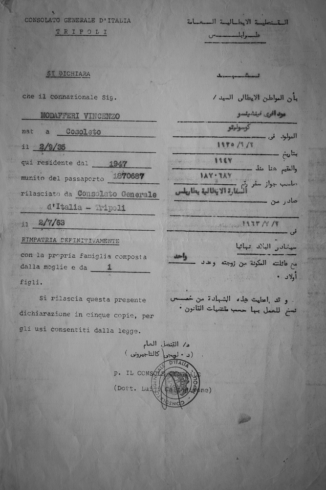 Nel 1945, dopo 5 anni di spostamenti tra le colonie d’Italia, sotto le bombe della guerra, Vincenzo si ricongiunge con il fratello maggiore. Trasferito poi in una nuova colonia, rimane in attesa di essere imbarcato di nuovo per la Libia, cosa che accade solo nel giugno del 1947.