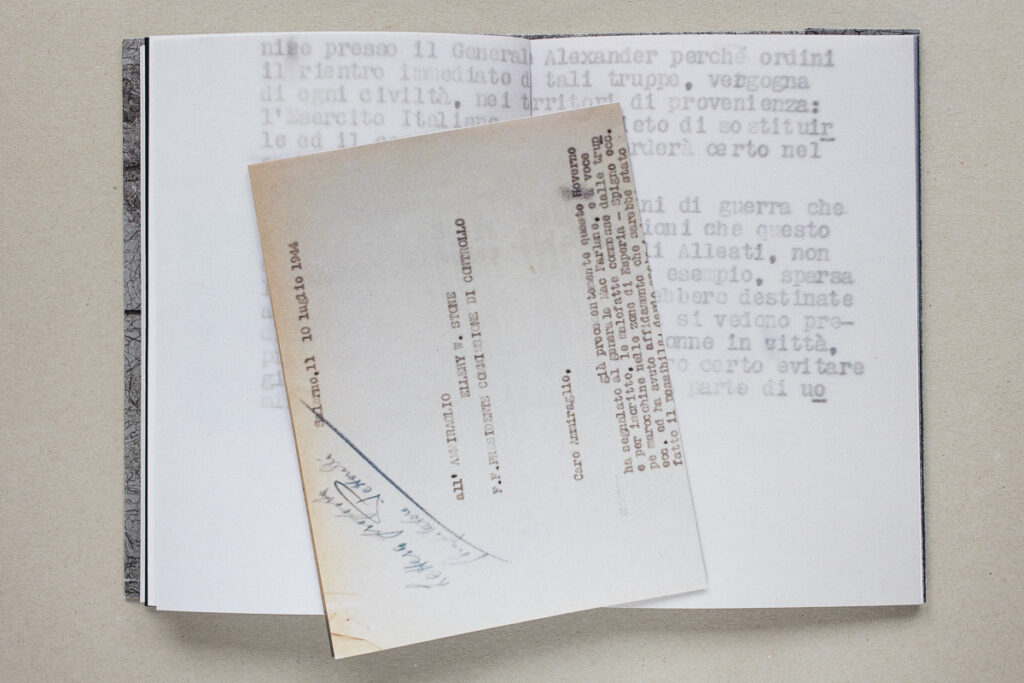 La lavorazione artigianale con inserti in carta trasparente stampata, riproduzioni di documenti e testi originali inseriti tra le pagine e una foglia incollata rendono ogni volume una copia unica e originale.
