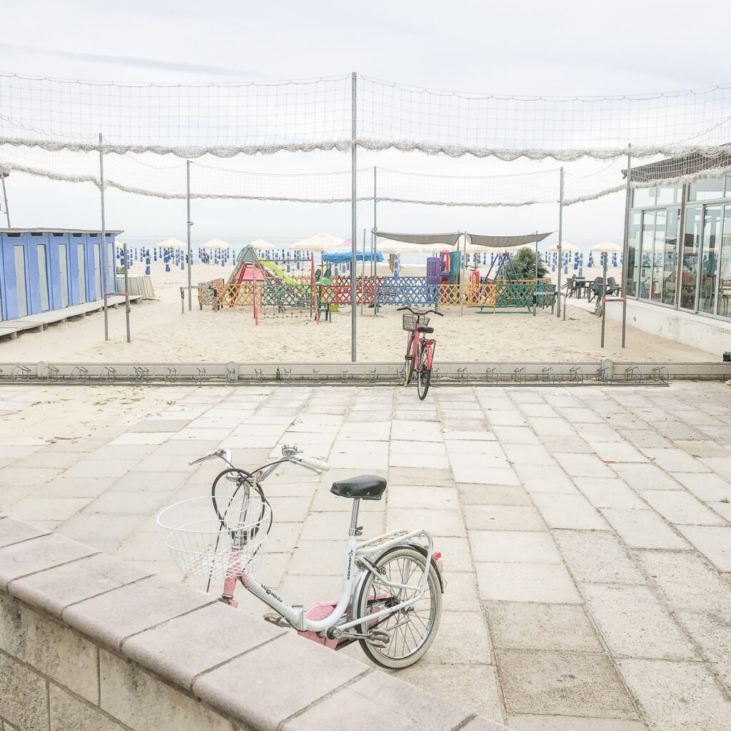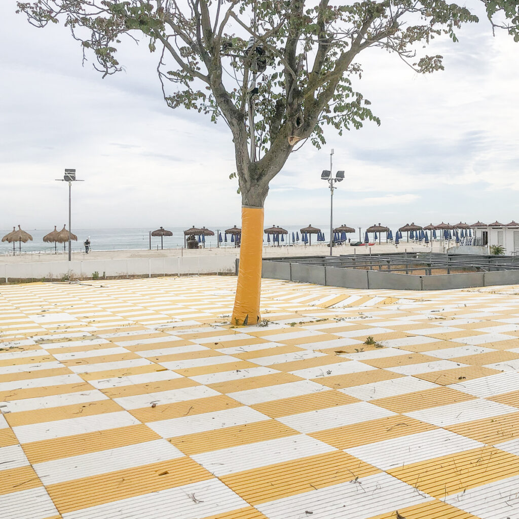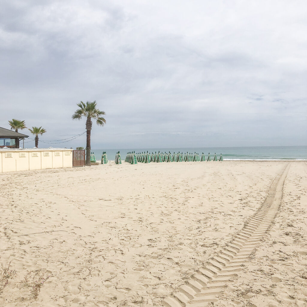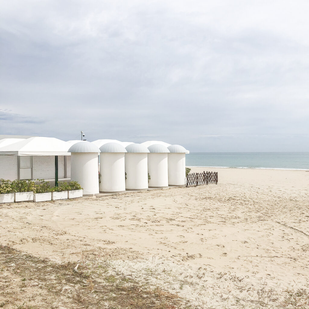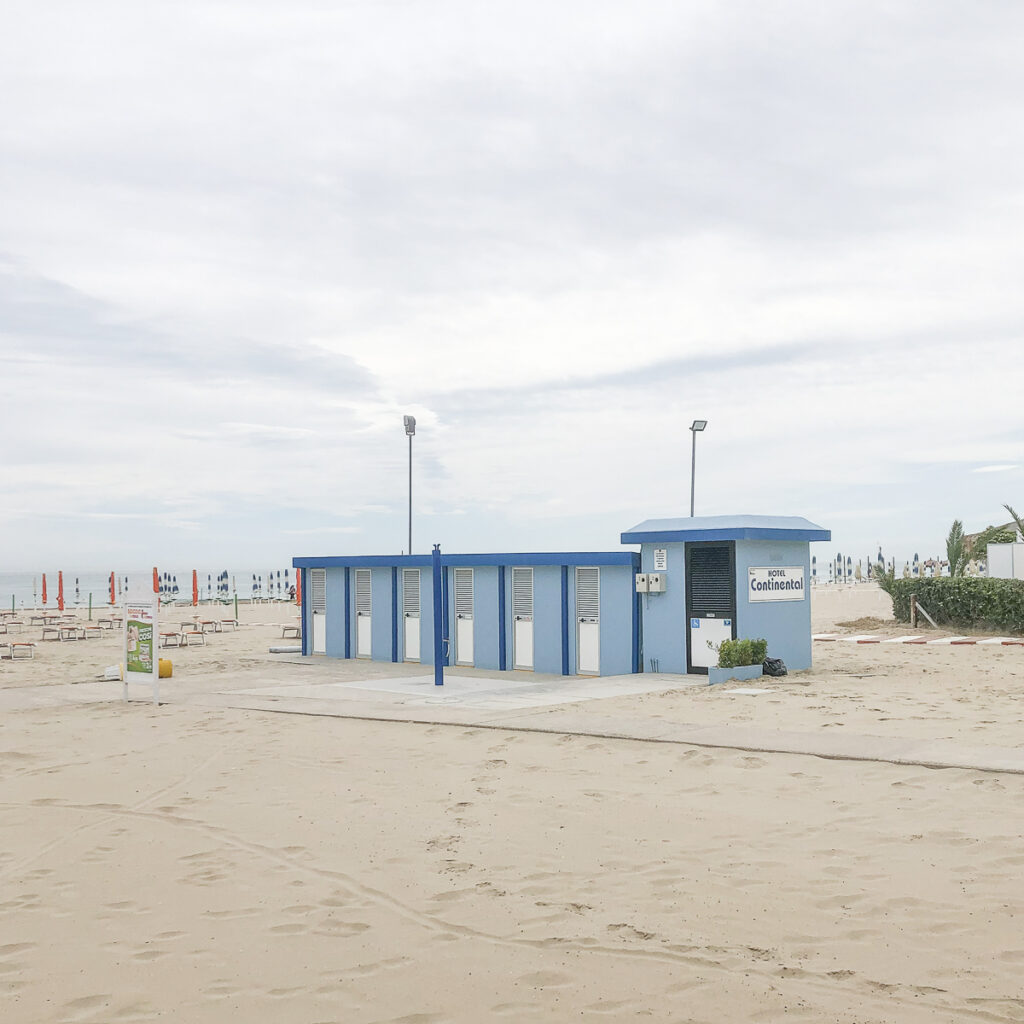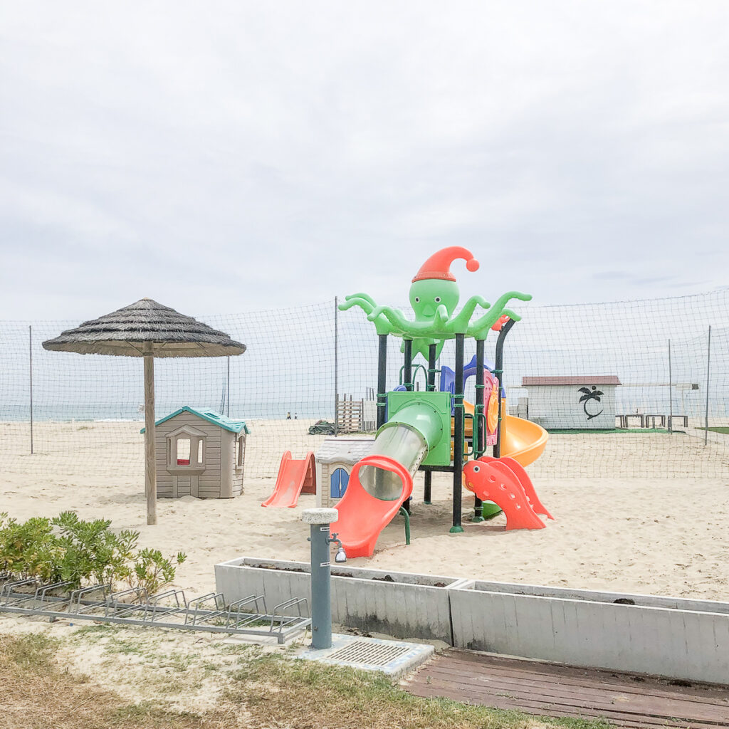 Nelle spiagge ancora desolate spuntano improvvise tracce di presenza umana, ombrelloni come funghi di stagione e giochi colorati.